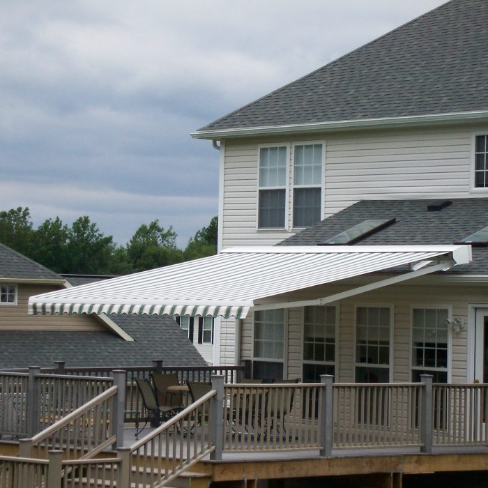 Horizontal shades are the perfect solution for adding privacy to a deck or porch. Sturdy powder-coated aluminum housing in several color choices. Fabric can be chosen to match an awning fabric.